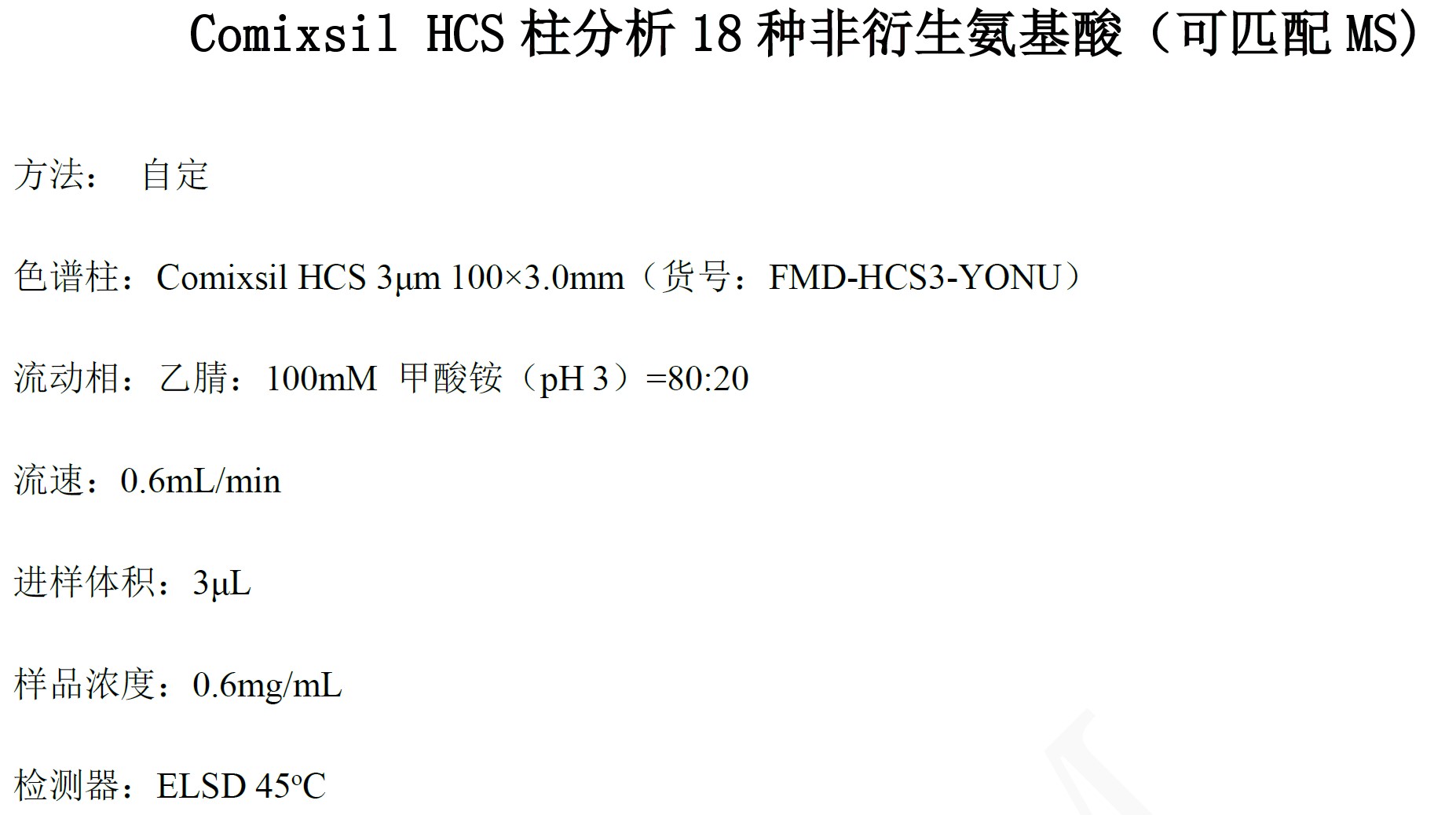 菲羅門也推出Comix系列智能神柱,可以在以ELSD、 CAD或者MS為檢測器的條件下分析氨基酸。