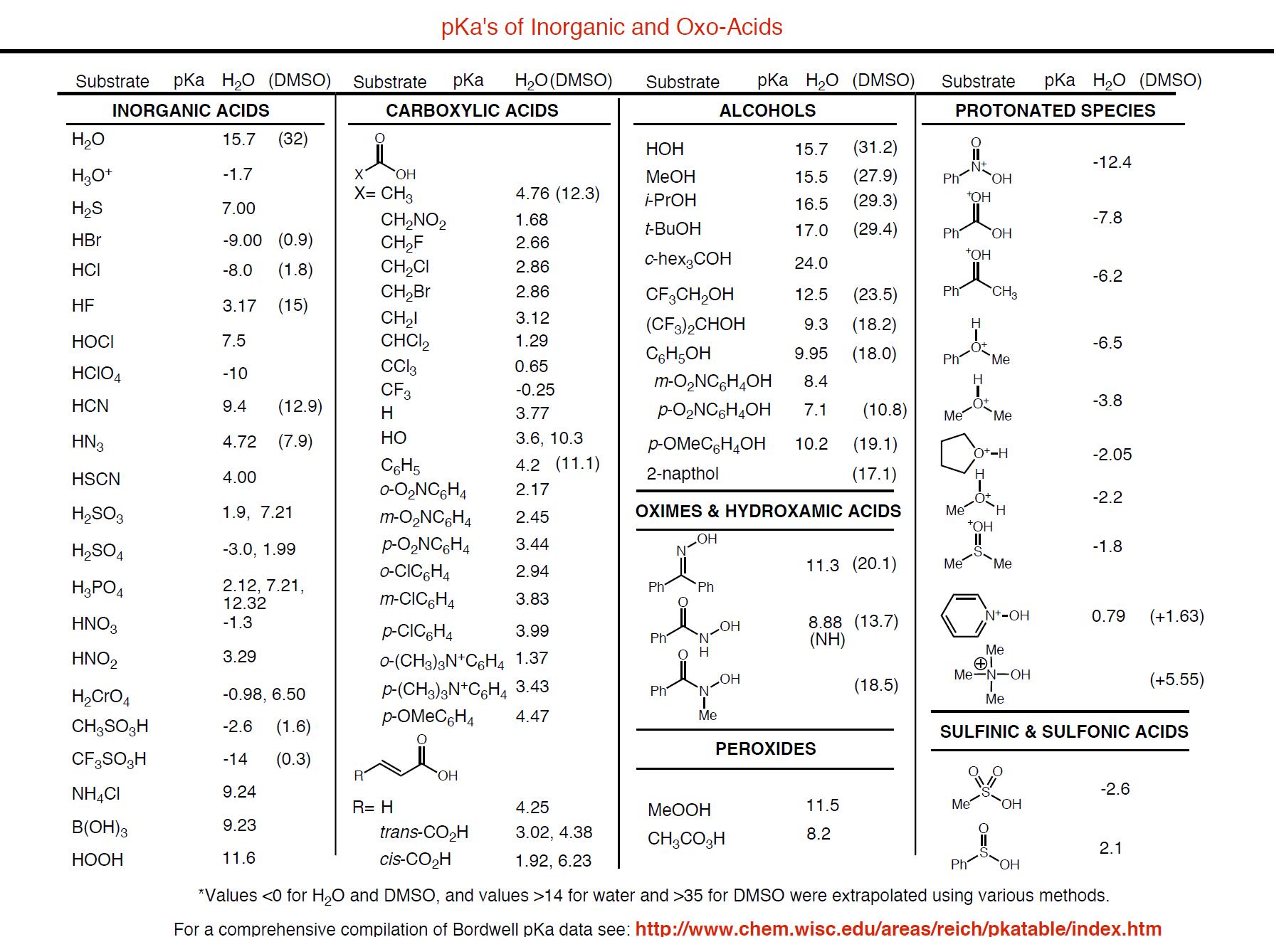 本文推薦哈佛大學(xué) David Evans制作的化合物的pKa表, 包括以下化合物的pKa。