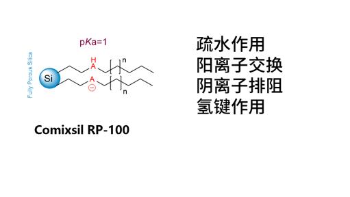 使用Comixsil RP-100色譜柱,通過陽離子離子交換和疏水作用保留和分離這兩個化合物。