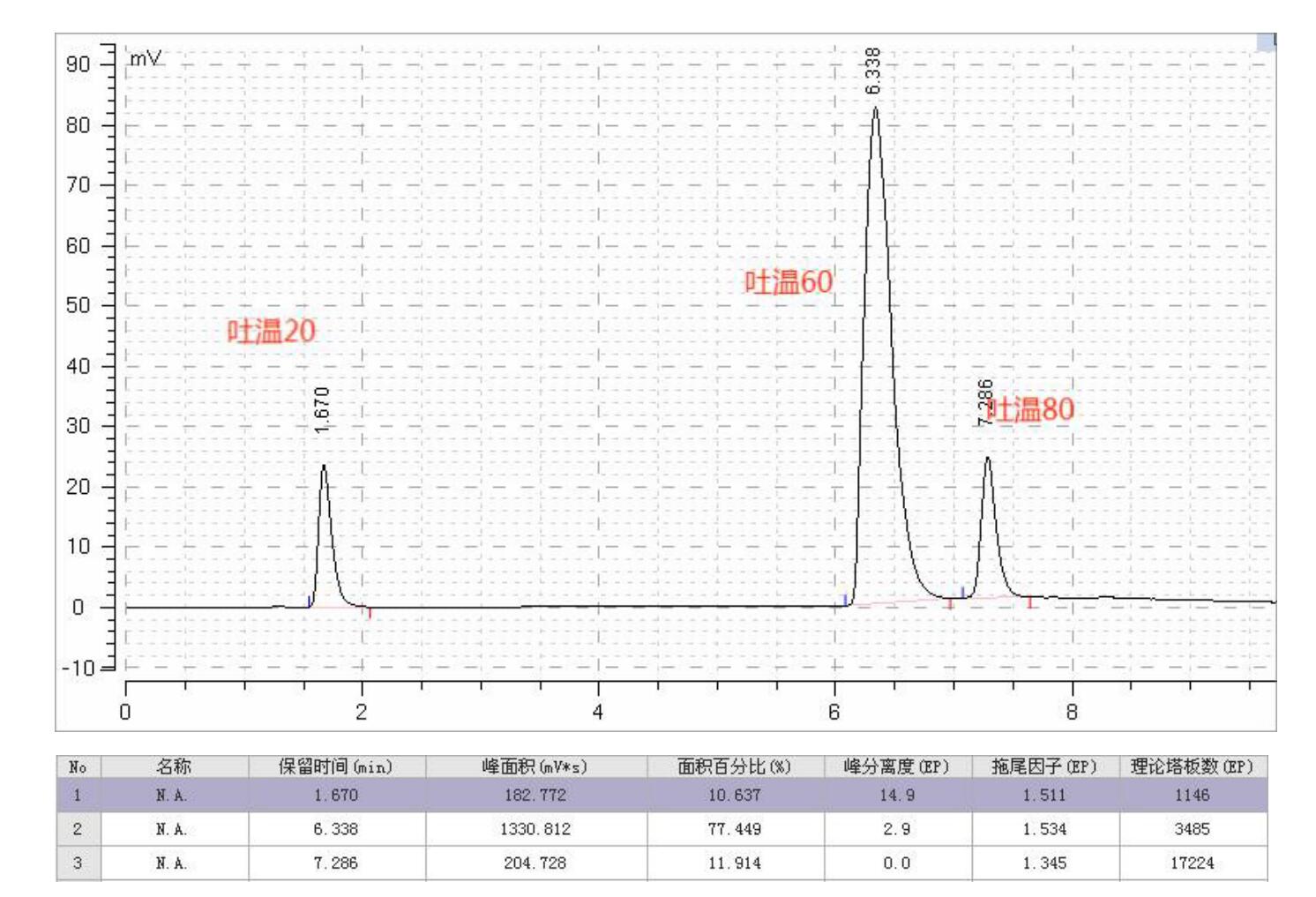 吐溫是一種非離子表面活性劑,常用于食品、化妝品、藥品等領域。通過HPLC-ELSD法,可以有效地分離和測定吐溫的各個組分,并對其純度、含量等進行準確分析。