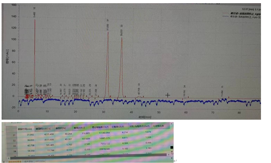 對應的峰:1.頭孢呋辛酯 B 異構體,2.頭孢呋辛酯 A 異構體, 3.△3-異構體 4\5. 頭孢呋辛酯 E 異構體(兩個都是) 結果滿足藥典要求。 菲羅門C18-AQ色譜柱在檢測頭孢呋辛酯片異構體方面具有一定的應用潛力,但具體的應用效果還需結合實驗條件和檢測方法綜合評估。以下是對菲羅門C18-AQ色譜柱在檢測頭孢呋辛酯片異構體時可能涉及的關鍵點進行分析: