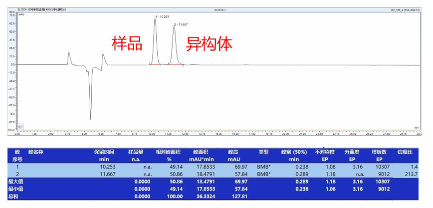 綜上所述,使用菲羅門手性柱對烏帕替尼中間體進行手性拆分是一個復雜但重要的過程。通過選擇合適的色譜柱、配置適當的流動相、進行專業的操作和數據分析,可以確保拆分過程的順利進行和拆分后得到的對映體的質量。 |