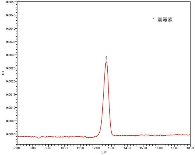 圖 1 添加水平為 0.5mg/kg 牛奶基質中氯霉素檢測色譜圖