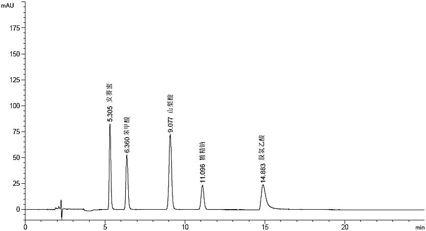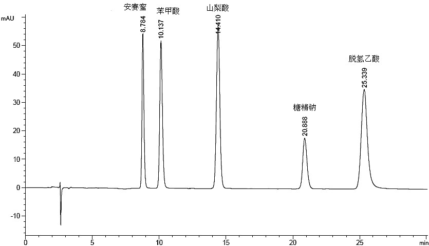 安賽蜜、苯甲酸、山梨酸、糖精鈉和脫氫乙酸五種防腐劑的同時檢測