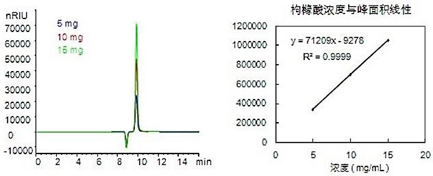 枸櫞酸和磺基水楊酸(蛋白沉淀劑)分離圖譜