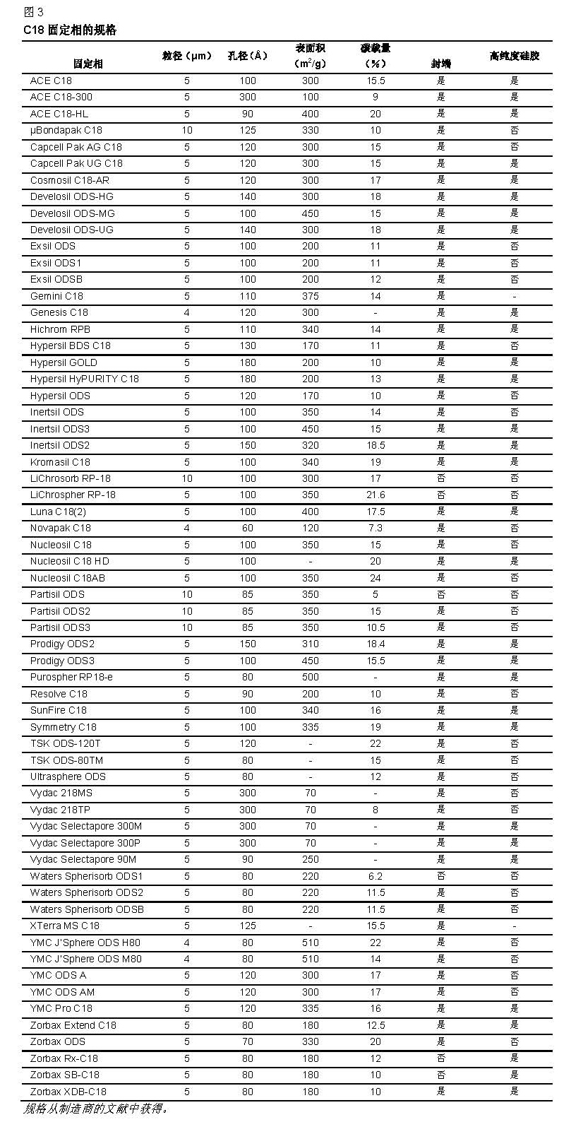 不包括其他鍵合相,如C8、CN、苯基和極性嵌入相。