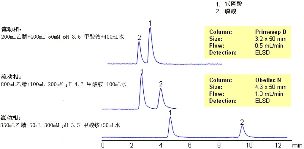 色譜柱:Primesep D 5μm 50×3.2mm(貨號:D-32.050.0510) Obelisc N 5μm 50×4.6mm(貨號:ON-46.050.0510)