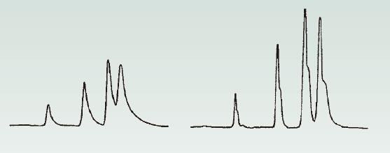 如果僅部分解析兩個峰形(兩個峰僅有部分分開),則可能會認為其是裂峰或雙峰。如圖4顯示的情形。